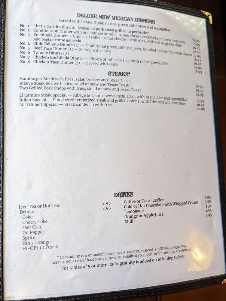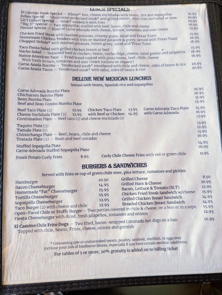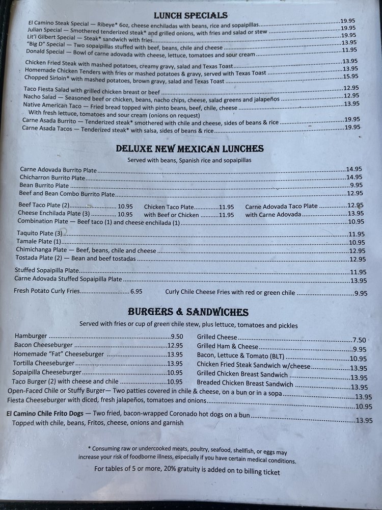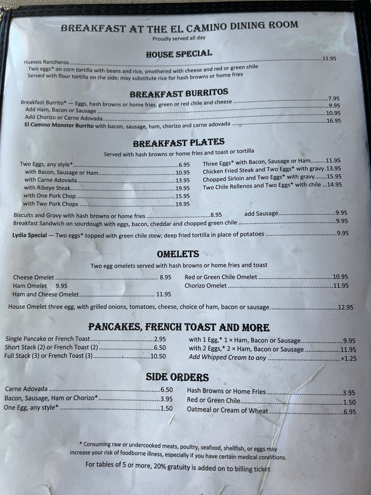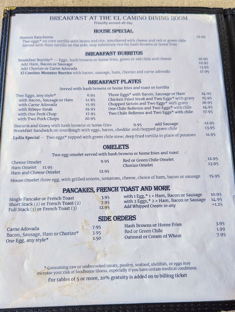 El Camino Dining Room Menu (Update 2025)